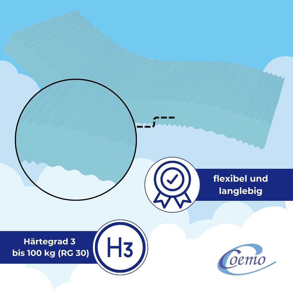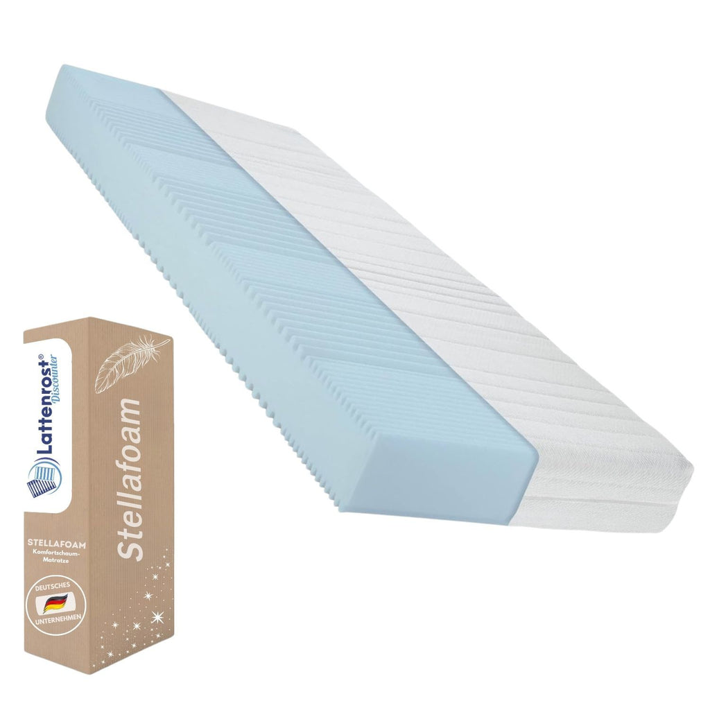 Unsere 7-Zonen-Komfortschaummatratze ist die ideale Wahl für einen erholsamen Schlaf. Die Matratze ist in 7 Zonen unterteilt, die jeweils spezifische Körperbereiche optimal unterstützen. Weichere Zonen im Schulter- und Hüftbereich unterstützen eine gleichmäßige Druckverteilung, während festere Zonen im Lendenbereich die Wirbelsäule fördern eine körpergerechte Lagerung. Bewegungen im Schlaf werden besser abfedert. Die weiche und anschmiegsame Beschaffenheit von Komfortschaum sorgt für ein komfortables Liegegefühl.