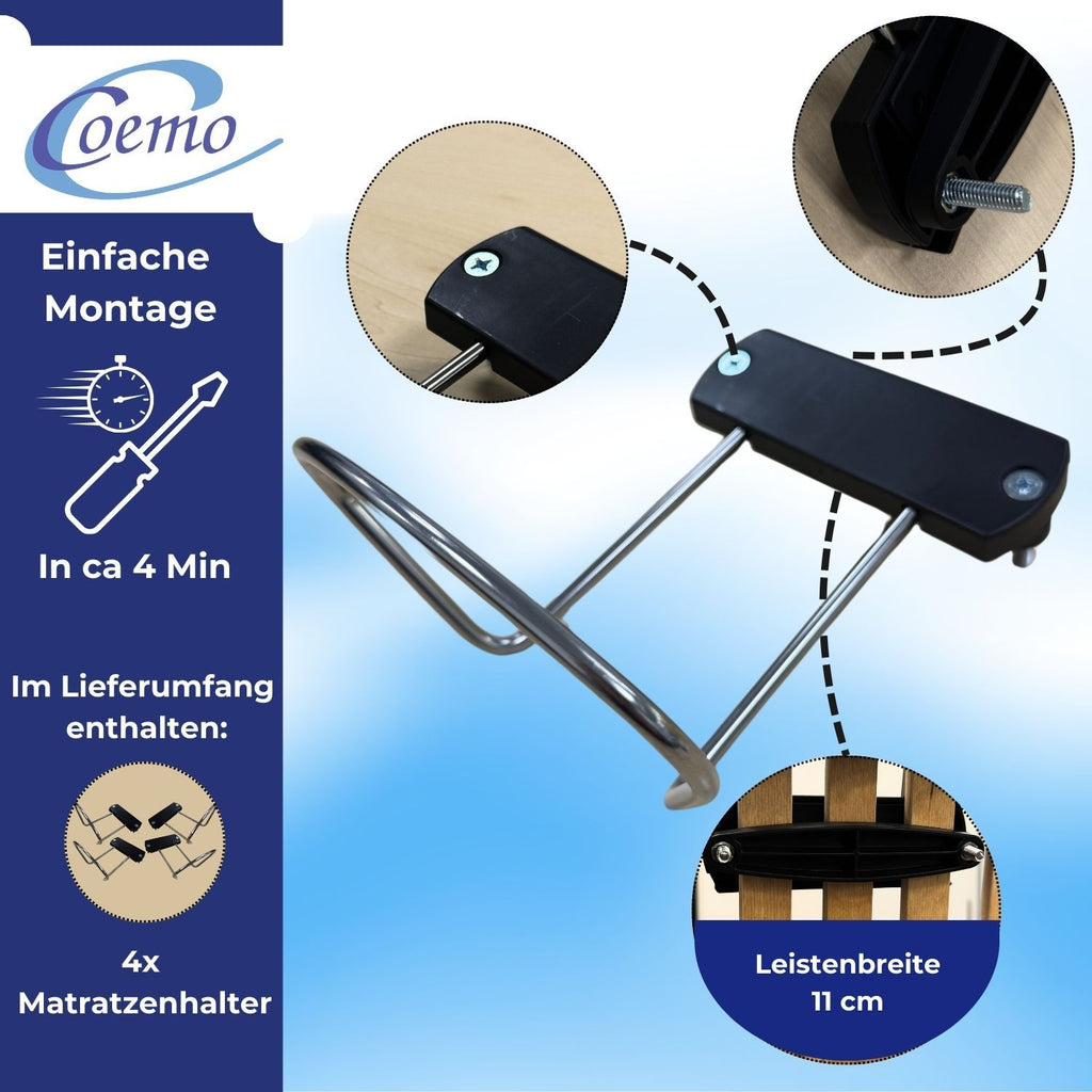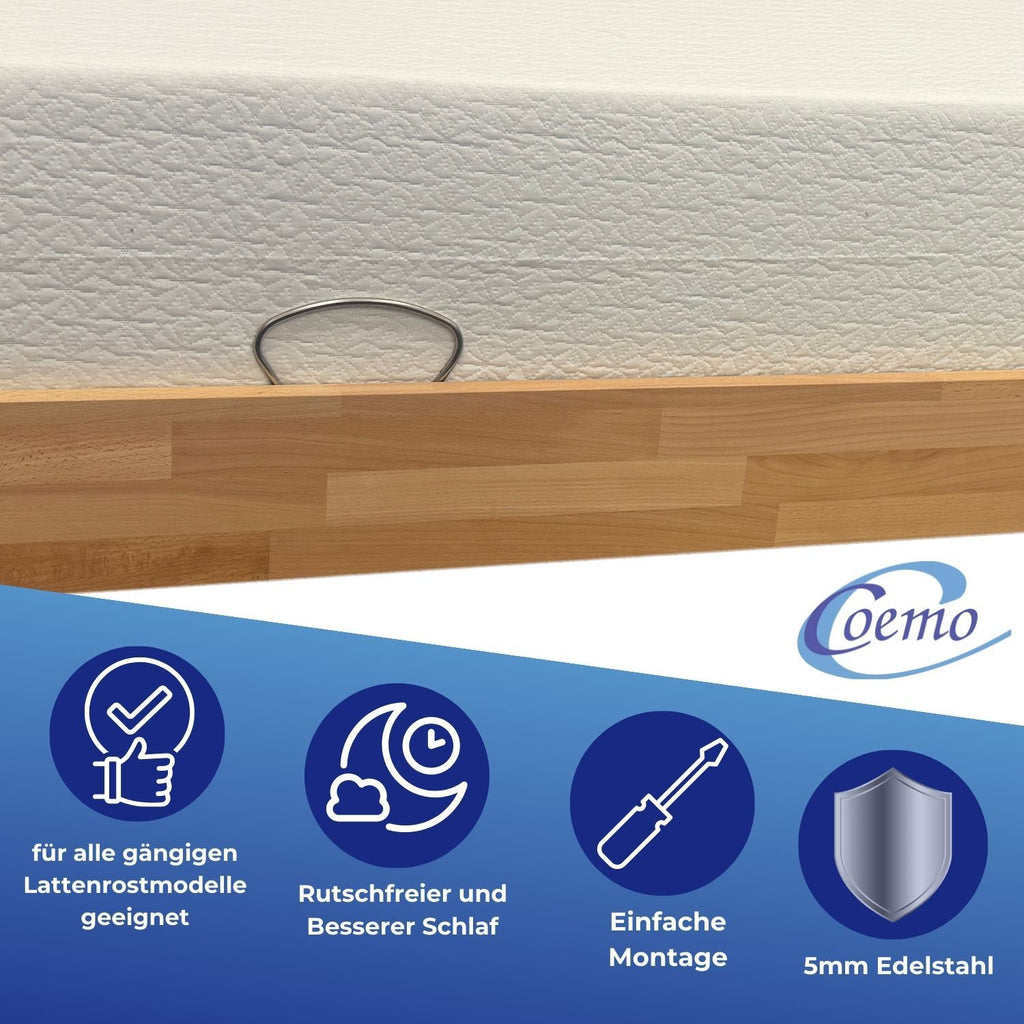 Erleben Sie endlich erholsame Nächte ohne störendes Verrutschen – mit dem Coemo Matratzenhalter. Gönnen Sie sich den Luxus eines stabilen und komfortablen Schlafes, den Sie verdienen!