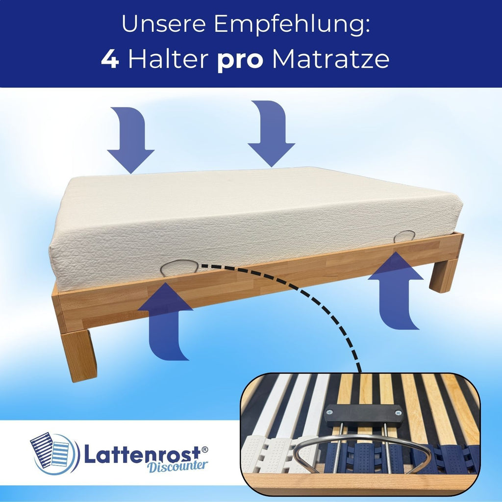 Unser Matratzenhalter Pro ist nicht nur eine einfache Lösung, sondern ein Meisterwerk der Technik. Gefertigt aus hochwertigem Stahl und mit einer elektrophoretischen Schwarzbeschichtung versehen, ist er nicht nur langlebig und rostfrei, sondern auch ästhetisch ansprechend. Keine Sorge mehr, dass Ihre Matratze vom Bett rutscht – unser Halter sorgt dafür, dass sie sicher an ihrem Platz bleibt, ob zu Hause oder unterwegs im Wohnmobil.